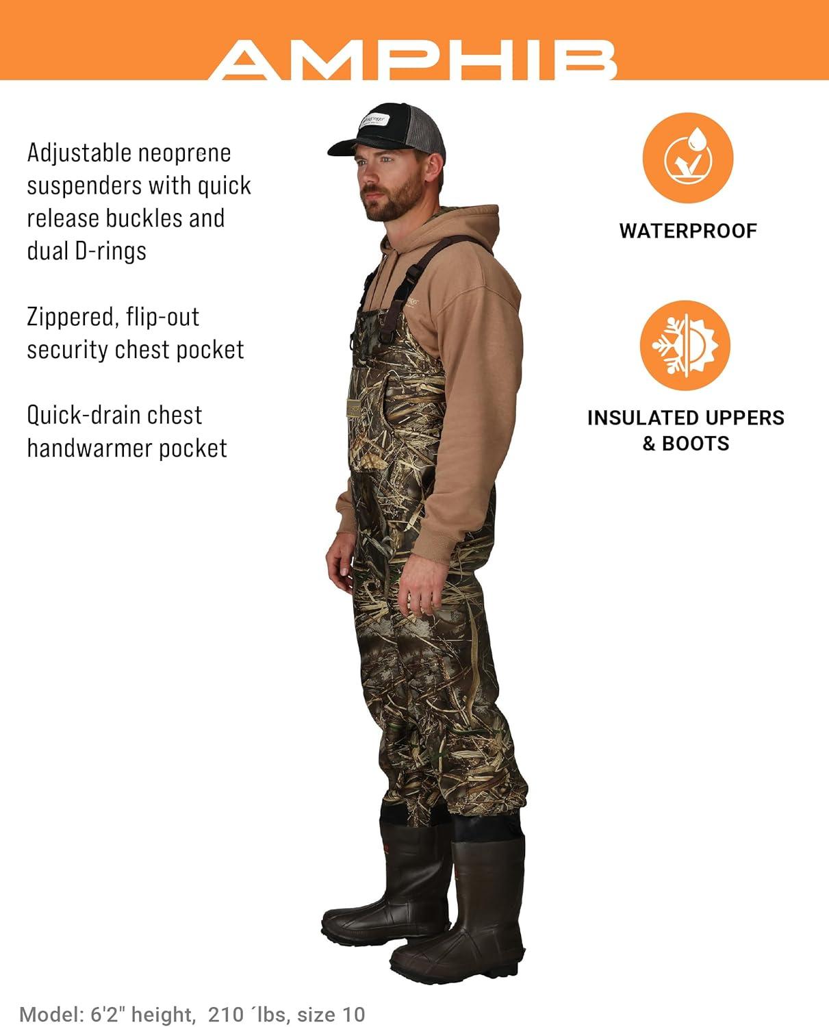 imageFROGG TOGGS Amphib Neoprene Bootfoot Waterproof Fishing Camo Chest Wader for Fishing Realtree Max7 7Realtree Max7