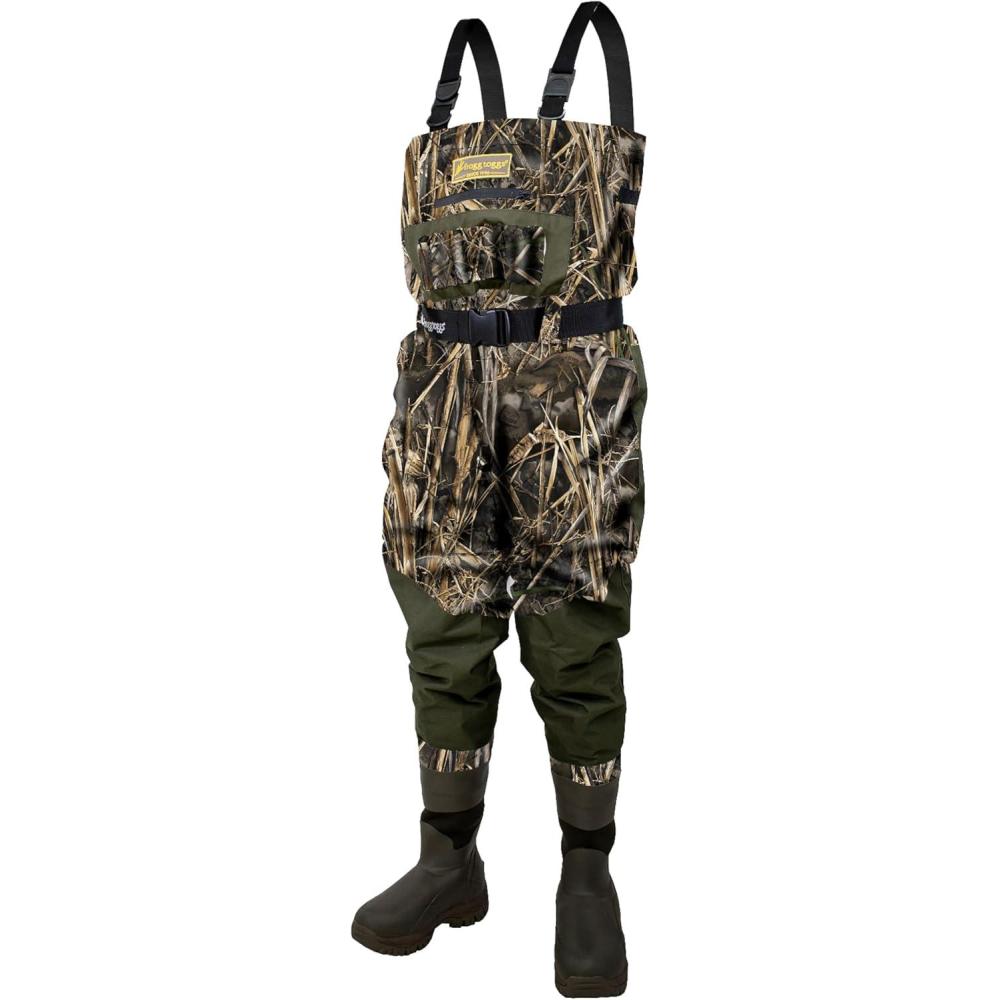 The Grand Refuge 3.0 Junior Bootfoot Insulated hunting bib for your favorite fishing partner! Just like the adult version, this bib is equipped with a 4-ply polyester upper, quick access front storage pocket, 10- count shell holder, internal fleece-lined handwarmer pocket, adjustable wading belt with locking buckle. A 120-gram removable, quilted insulated liner with patented zip-in/out technology for cold-weather comfort. Heavy-duty abrasion-resistant nylon in the shin/knee/seat area partnered with 5mm, 1,200-gram Thinsulate™ Ridgebuster boots.