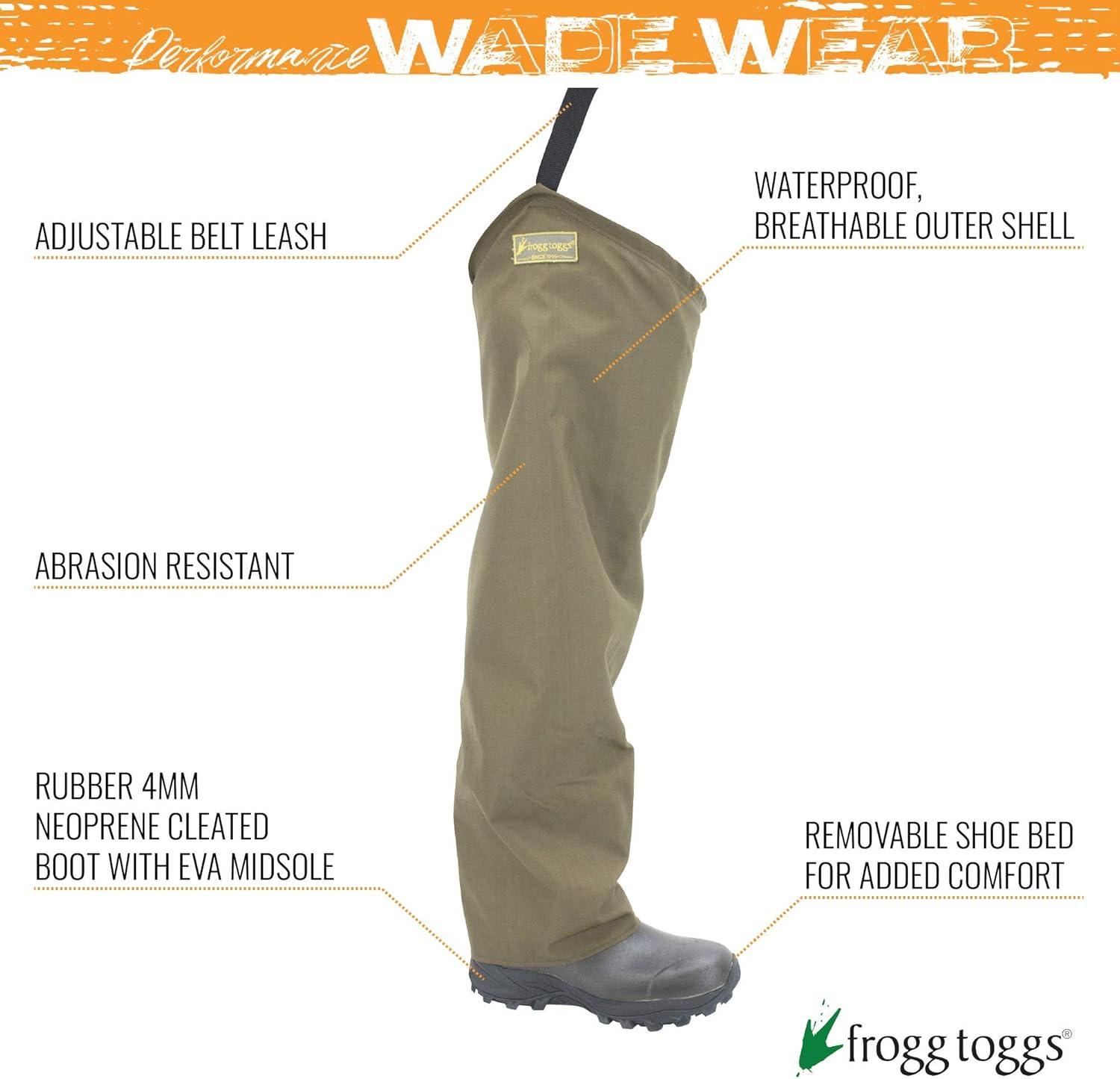 The Frogg Toggs Brush Hogg Heavy-Duty Nylon Bootfoot Hip Wader is designed with a waterproof and breathable outer shell. Excellent abrasion resistance protects in tough fishing environments while the integrated adjustable belt leash keeps the wader securely fastened to the user. The rubber 4mm neoprene Outlander cleated boot outsole with EVA midsole offers durability and flexibility. The shoe bed is removable for versatility and added comfort.