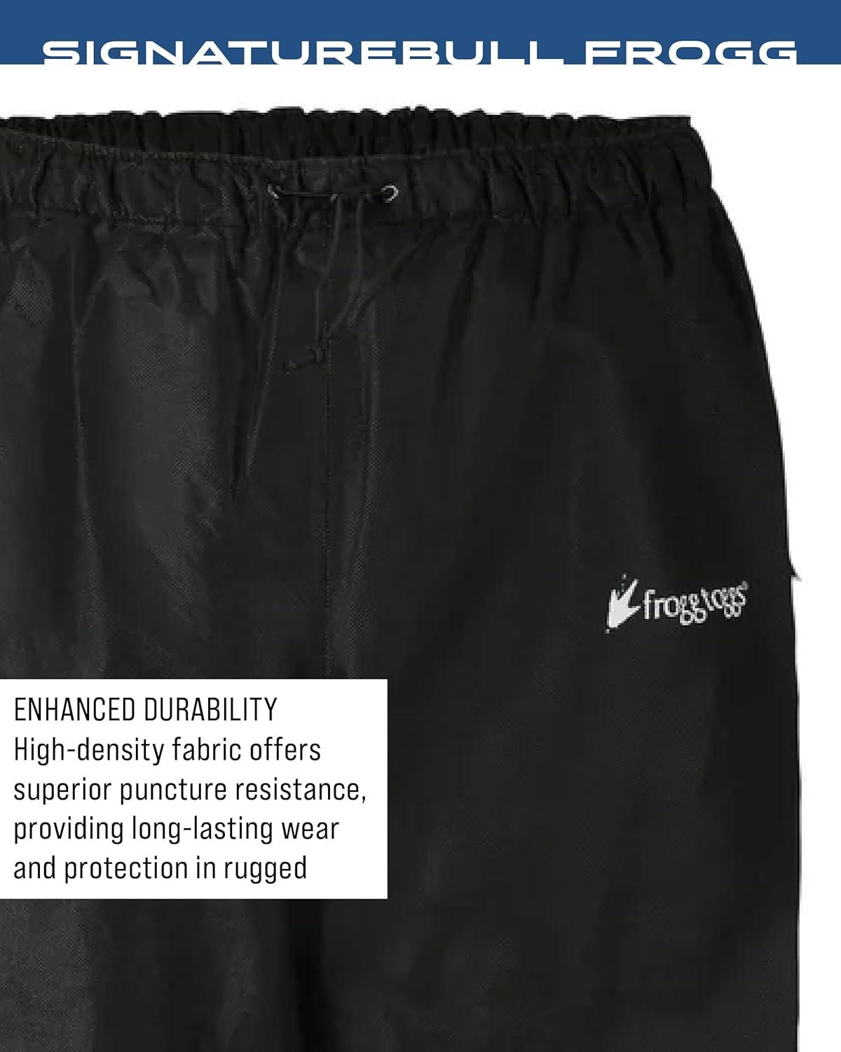 The Signature Bull Frogg Pants features waterproof and breathable DriPore technology and is constructed from three layers of a 100% nonwoven, 130 gram polypropylene material to offer more puncture resistance. The pants compliment the BullFrogg Jackets to keep out the worst weather and tough conditions.