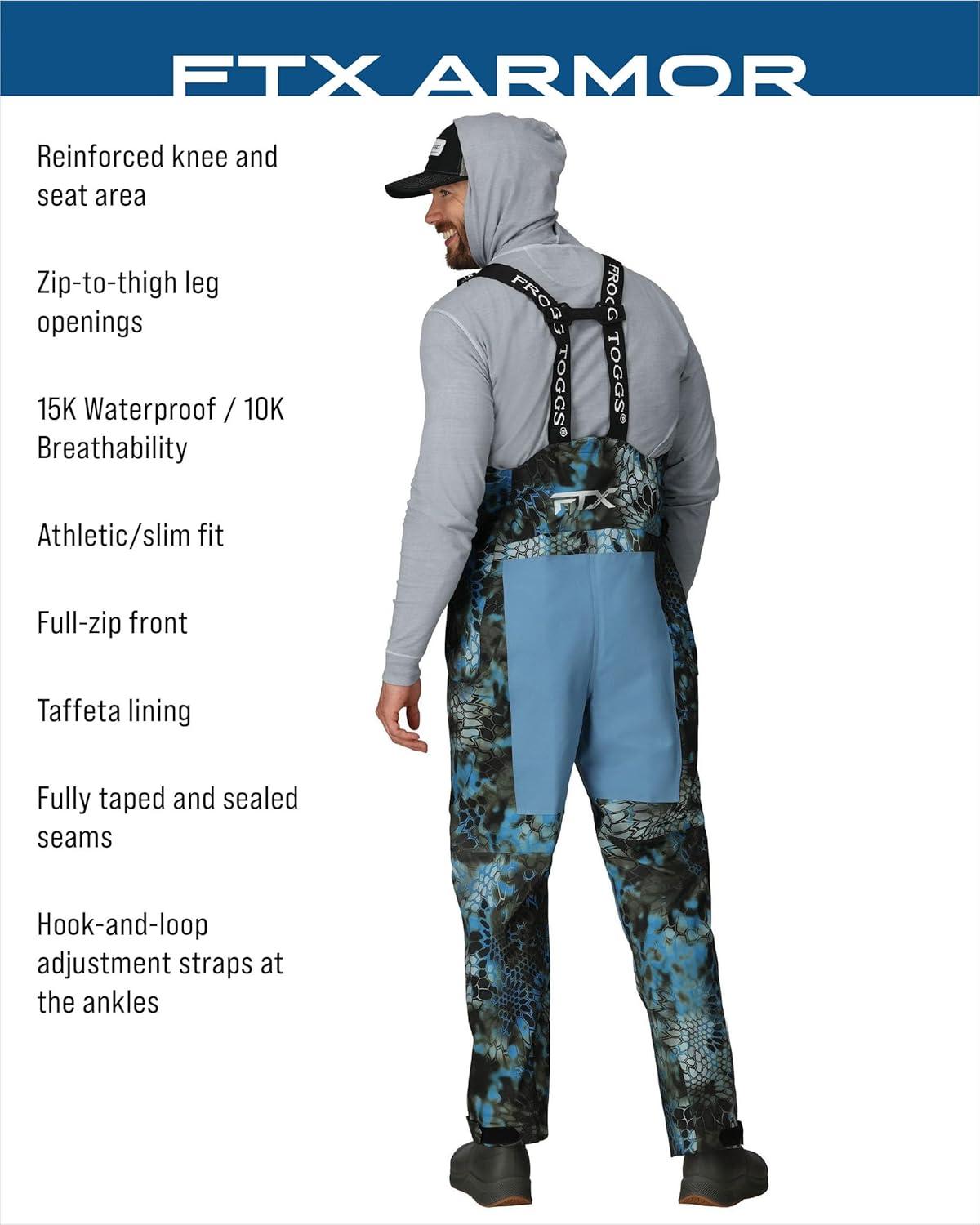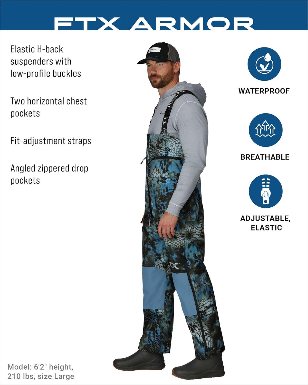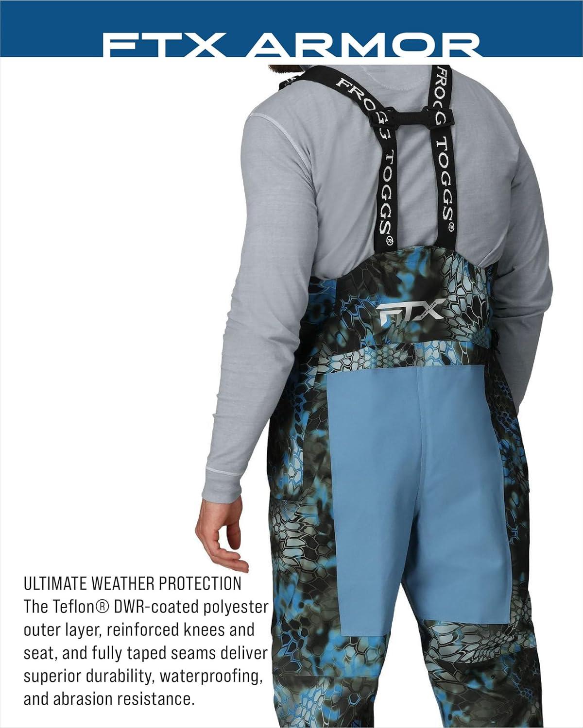 FROGG TOGGS Men’s FTX Armor Premium Waterproof Rain, Fishing Bibs(Kryptek Neptune)