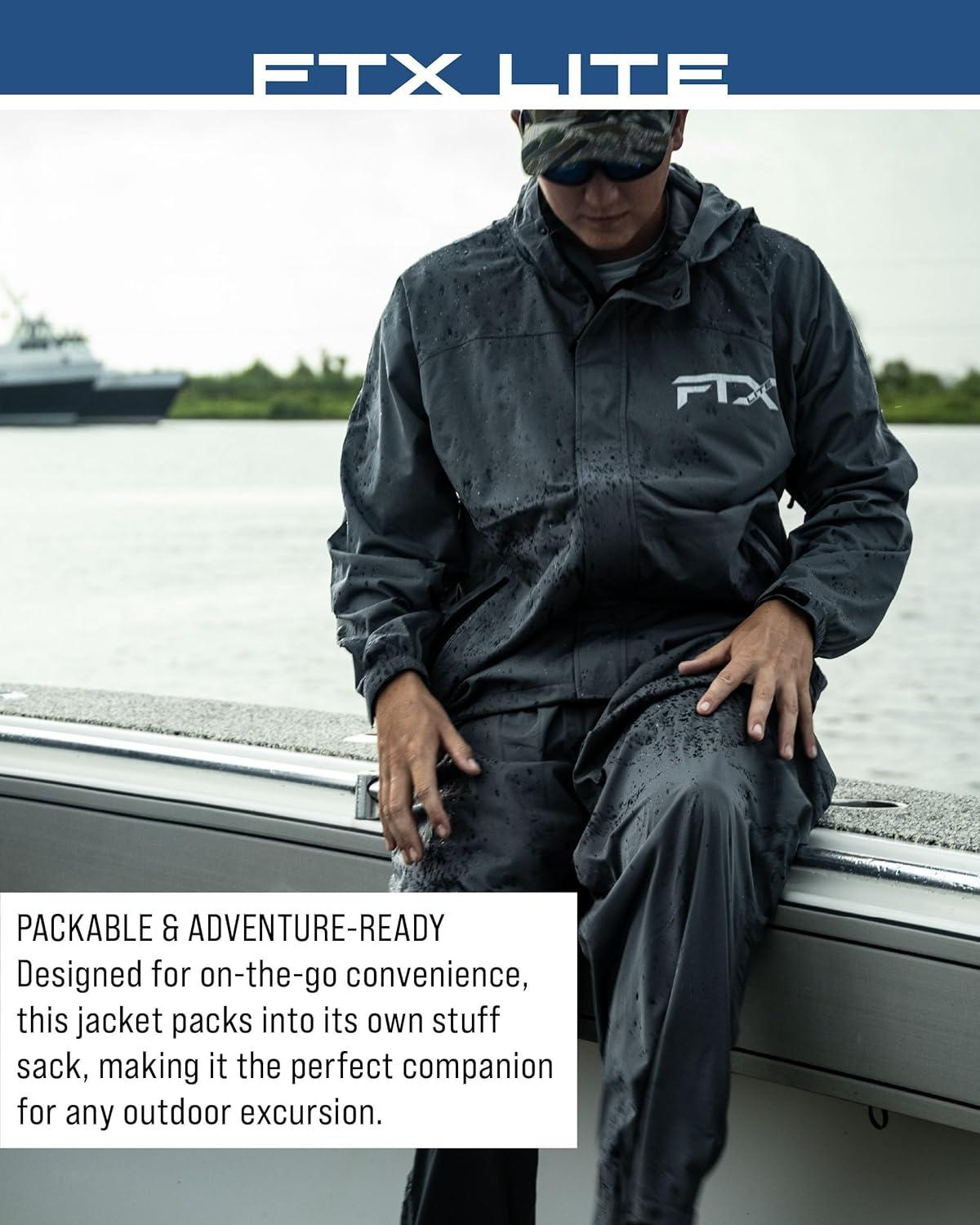 Decades of research, design and development have landed on perfection in the FTX Lite series. An angler’s perfect waterproof outerwear choice brings you a light, packable, portable, and extremely comfortable fishing rain jacket at an affordable price. 10k waterproof/breathability rating, 4-way stretch, ultralight, full front water-resistant zip closure with snap storm flap, attached hood with drawstring closure, pit zips, two handwarmer pockets, adjustable wrist, adjustable waist with locking drawcord, storage/stuff sack