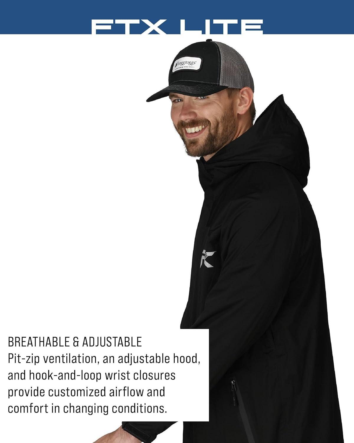 FROGG TOGGS Men’s FTX Lite Rain Jacket – 3-Layer Waterproof, Breathable, Stretch Comfort(Black)