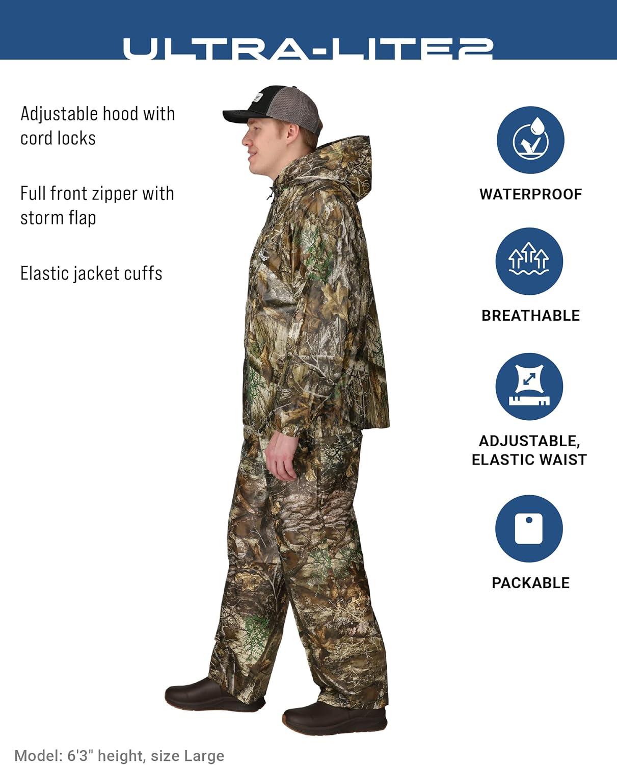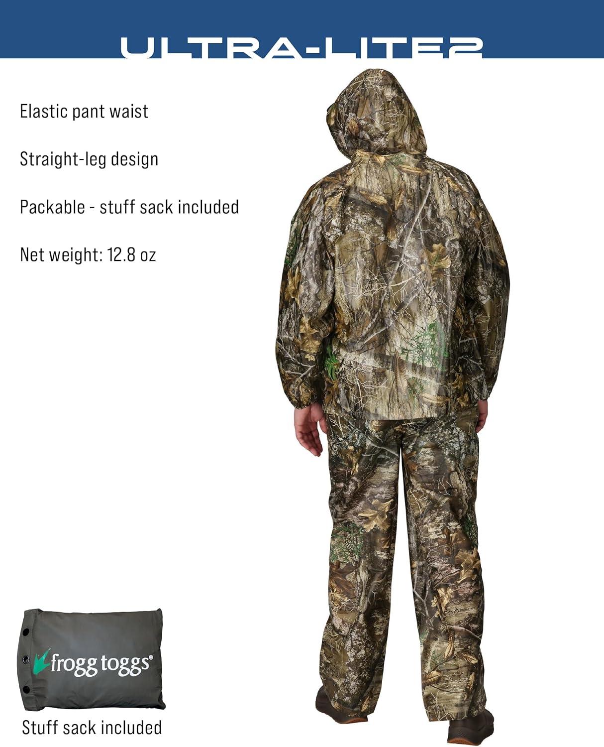 FROGG TOGGS Men's Ultra-Lite2 2-Layer Waterproof Breathable Rain Suit(Realtree Edge)