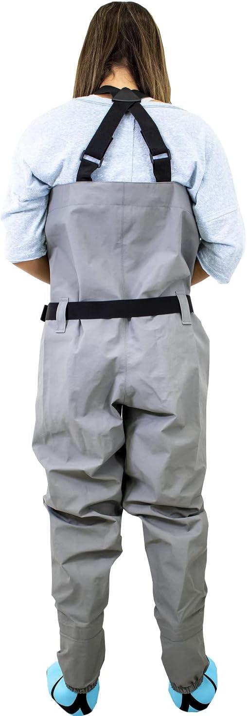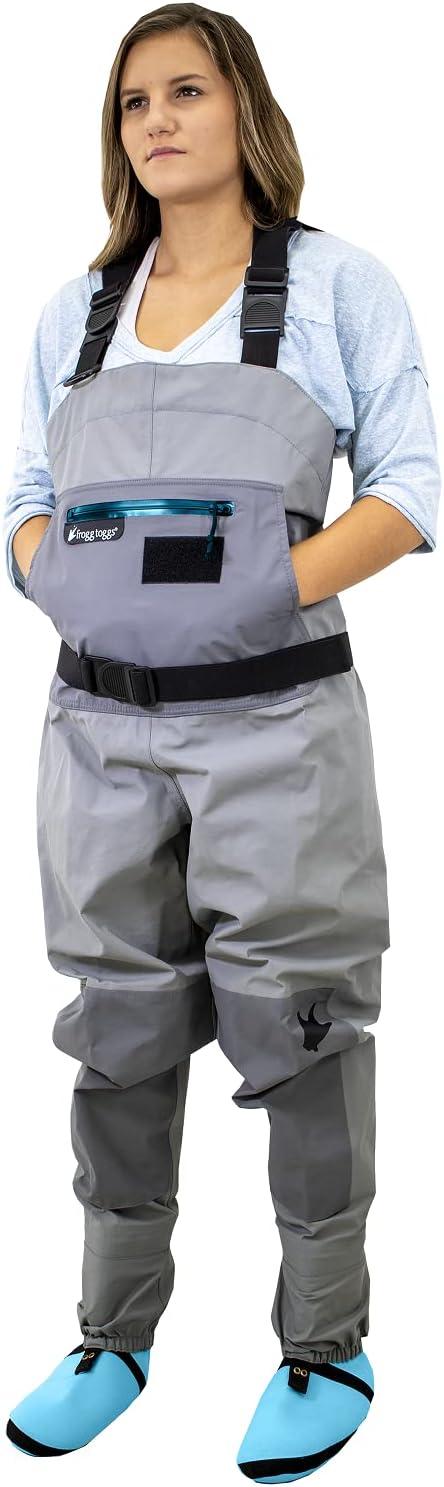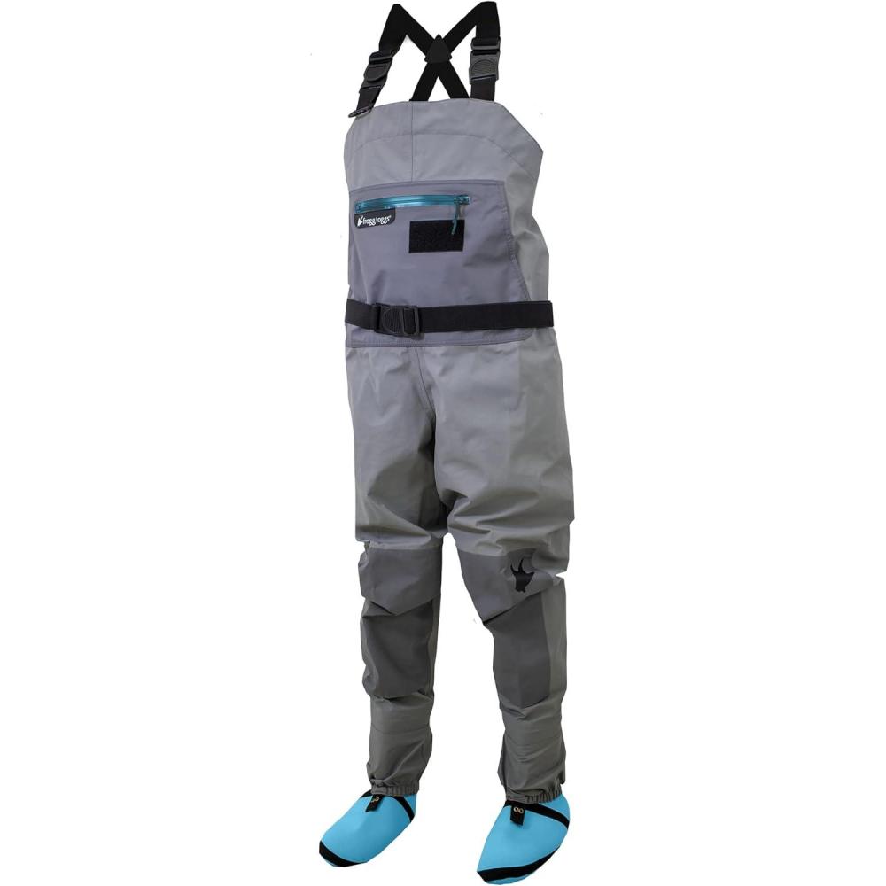 The Frogg Toggs Women’s Hellbender Stockingfoot Chest wader features a 4-ply nylon upper with an adjustable wading belt with locking buckle and durable reinforced knees. The X-Back suspenders are adjustable with low-profile buckles for a personalized fit. An oversized multifunctional chest pocket features a dual entry zippered handwarmer pocket and horizontal zippered storage pocked. A zippered storage pocket and zippered flip-out security chest pocket add additional storage. Double-taped Neoprene booties provide warm, dry comfort. The women’s specific fit is designed for the lady angler.